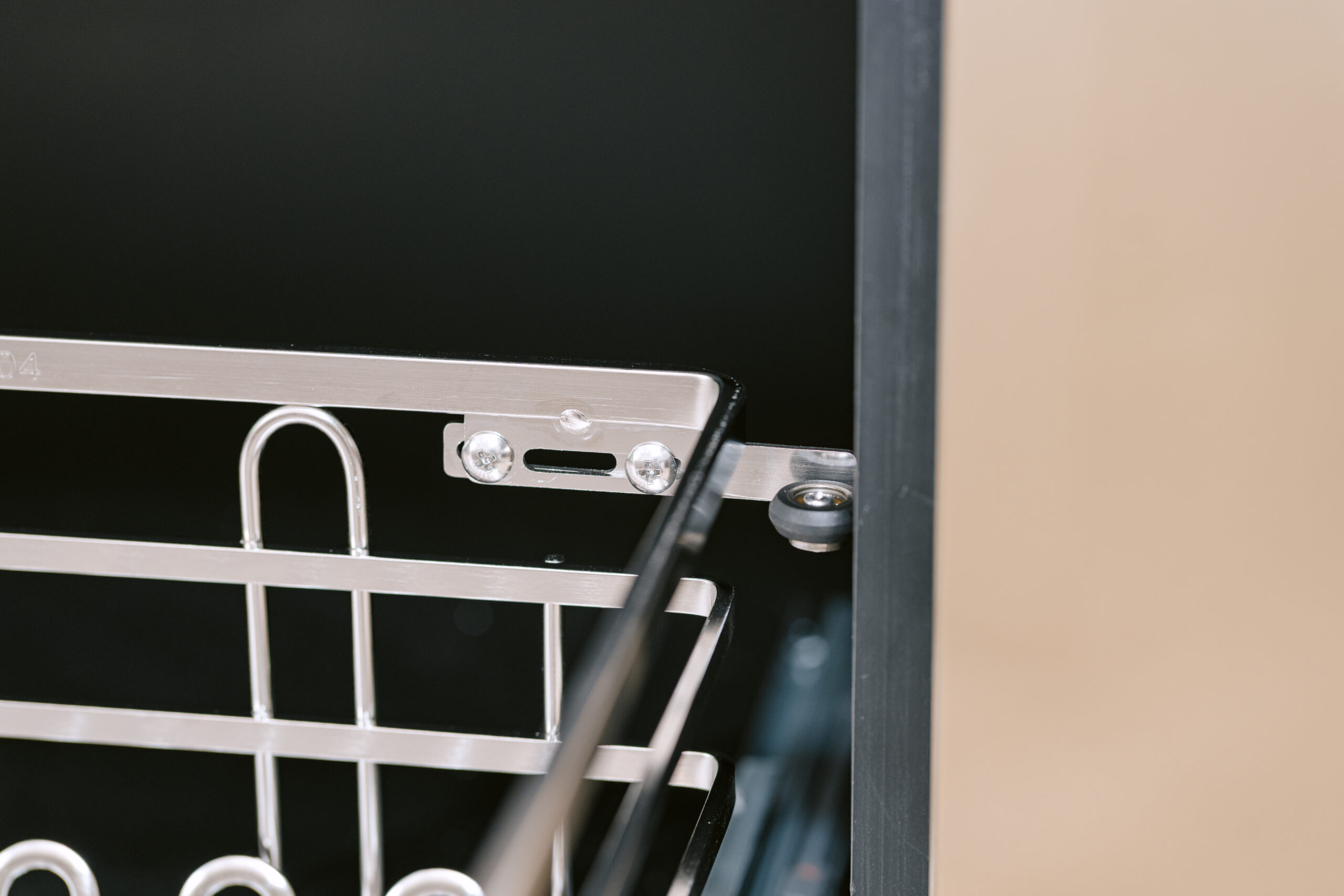 Kệ được trang bị hệ thống ray giảm chấn 3 lớp, hoạt động êm ái và bền bỉ. Dù chứa nhiều nồi chảo nặng, kệ vẫn trượt ra vào nhẹ nhàng, không gây tiếng ồn, tạo cảm giác dễ chịu trong từng thao tác nấu nướng.