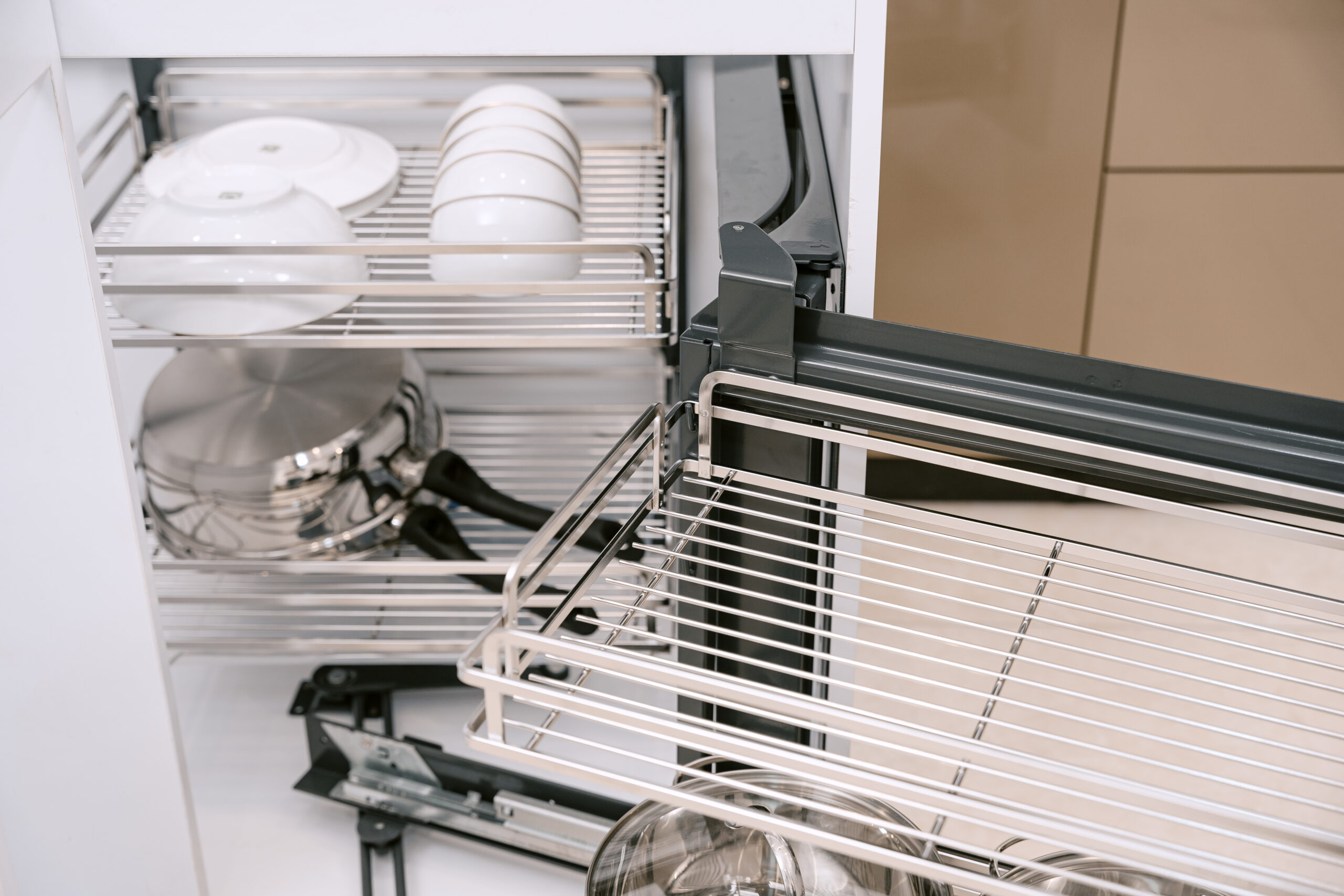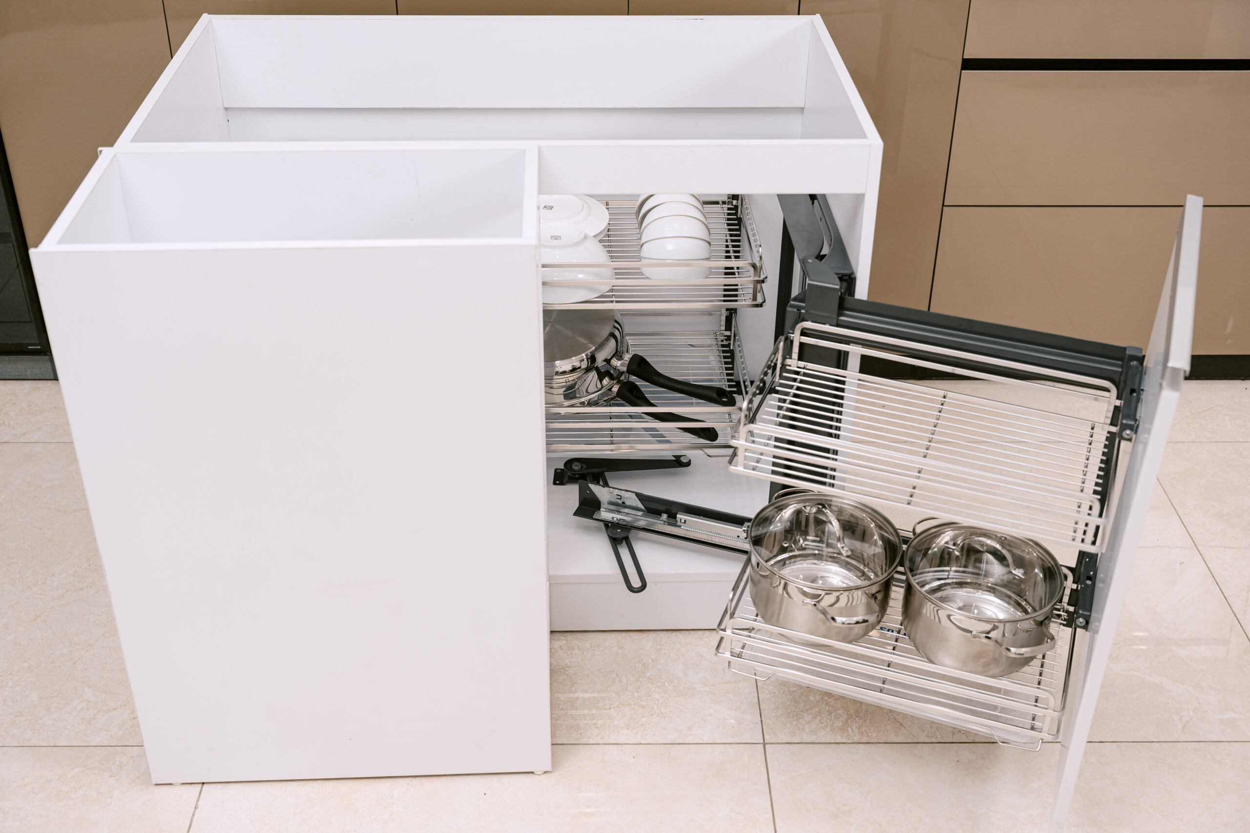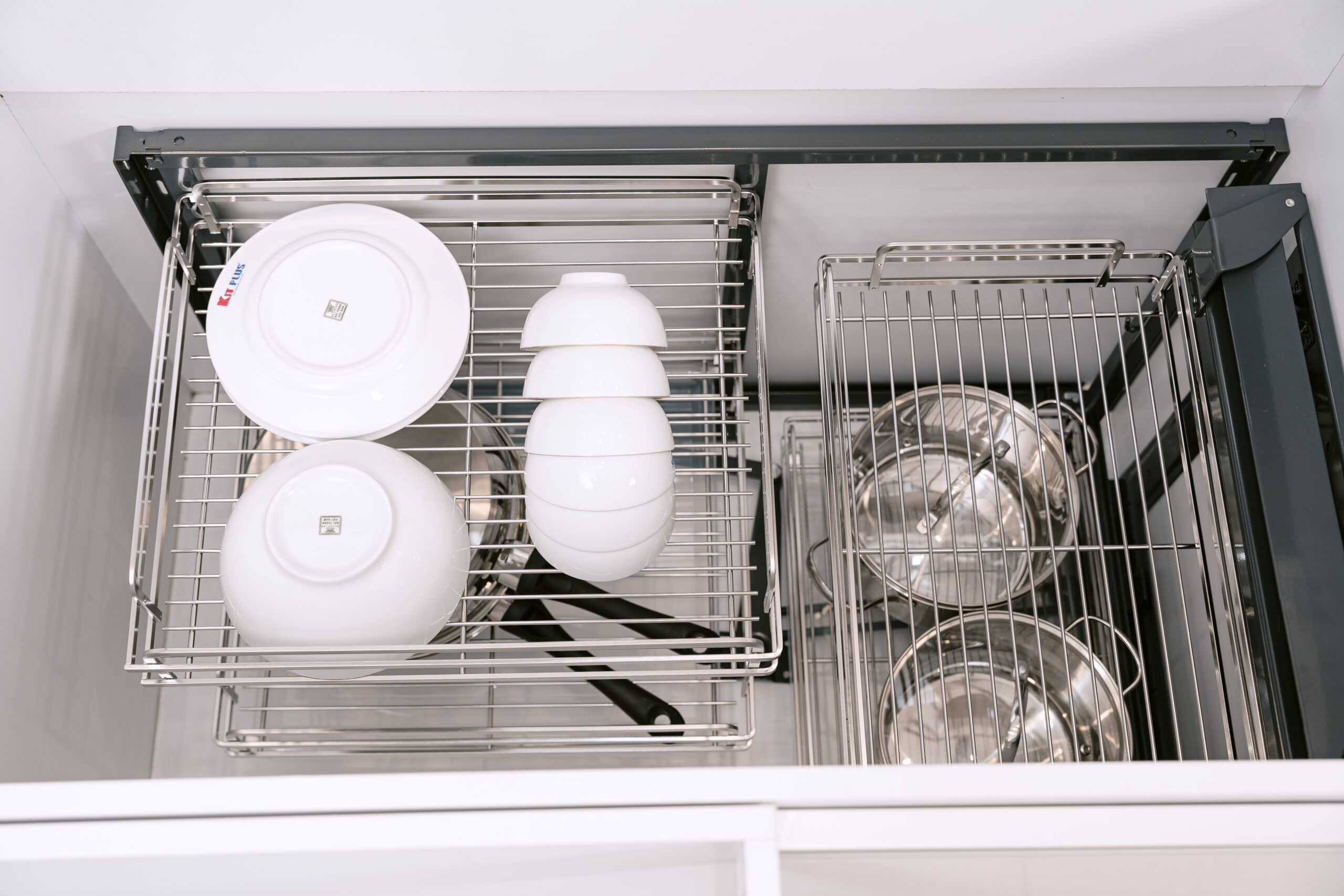 • Phù hợp không gian góc của tủ bếp mà gia chủ muốn có thêm không gian chứa đồ.