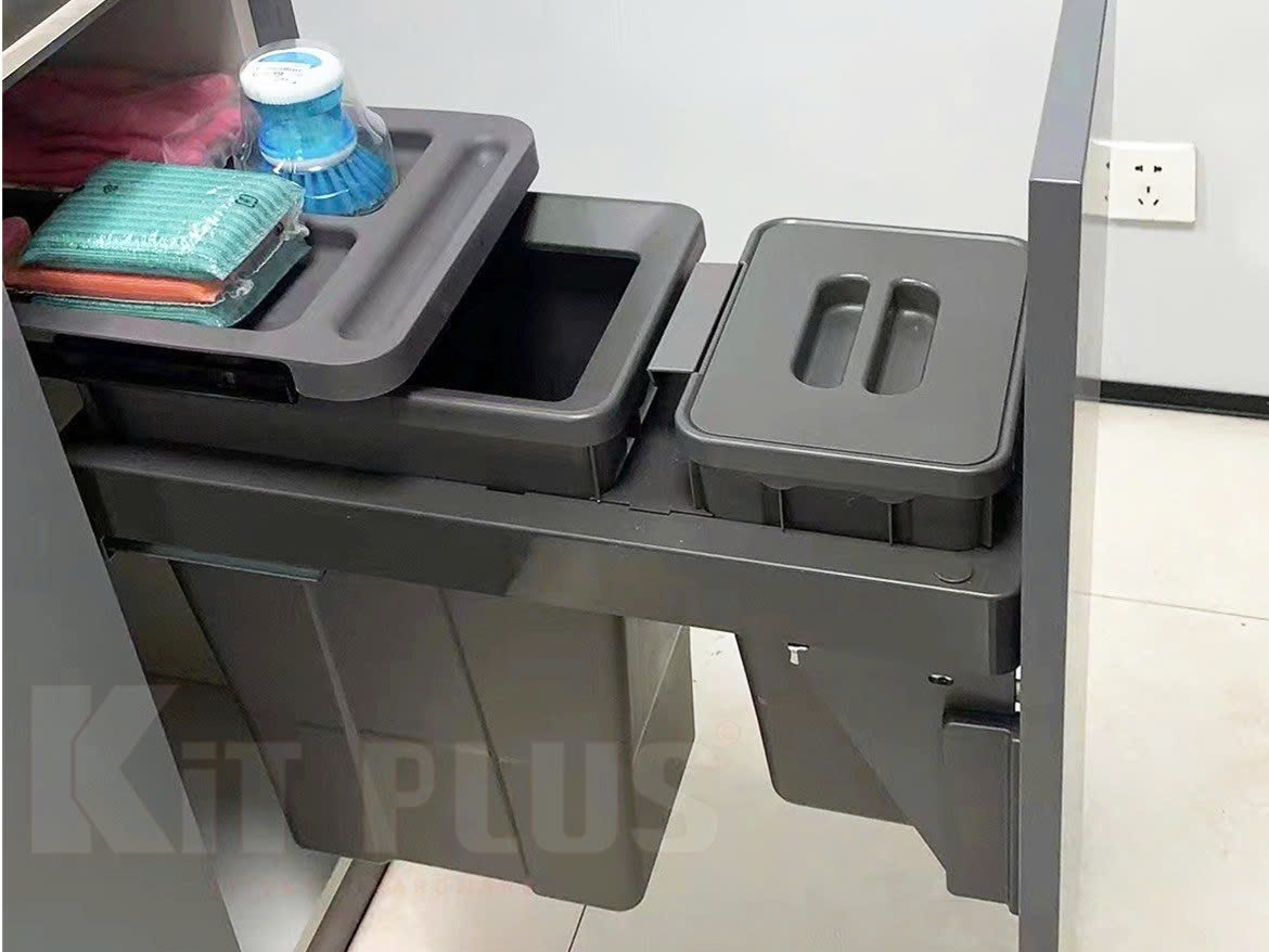 Tái định nghĩa sự ngăn nắp với thùng rác 2 ngăn ray âm KitPlus. Thiết kế đa tầng thông minh, vận hành tĩnh lặng, kiến tạo chuẩn mực mới cho căn bếp hiện đại.